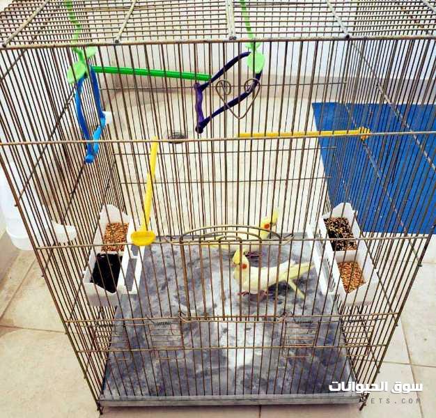 زوج كيور الكوكاتيل عمر سنة للبيع شامل القفص والاكسسورات صوت جميل وخالي من الامراض